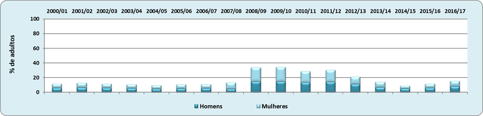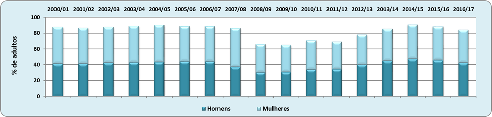 de educação/formação orientadas para adultos, por sexo, no Continente