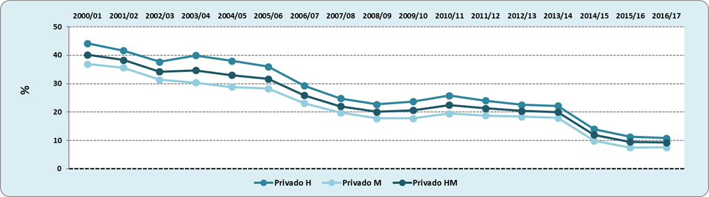 e desistência no ensino secundário, por natureza de estabelecimento |