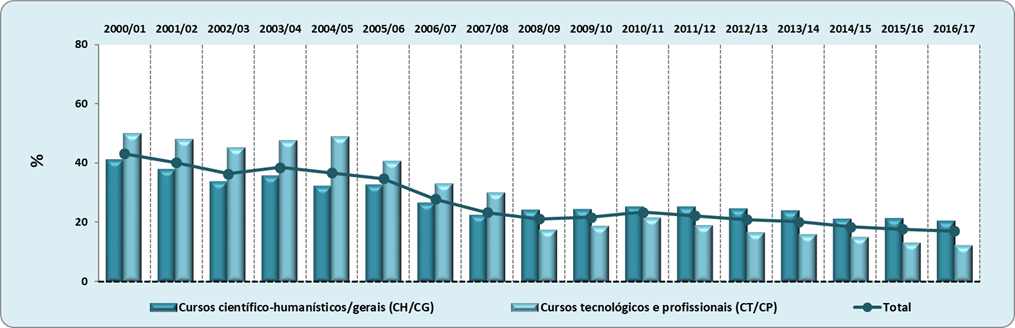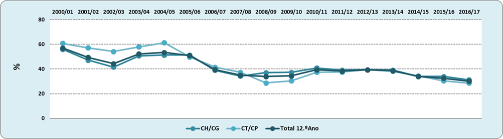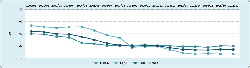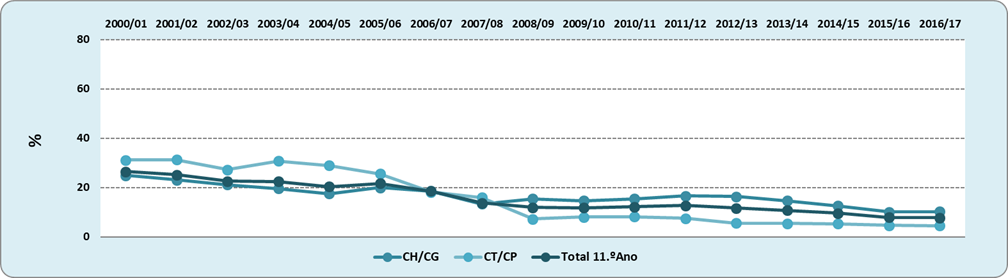 desistência no ensino secundário, segundo a orientação curricular e ano de
